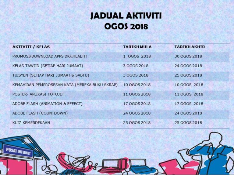 Jadual Kelas Bagi Ogos 2019