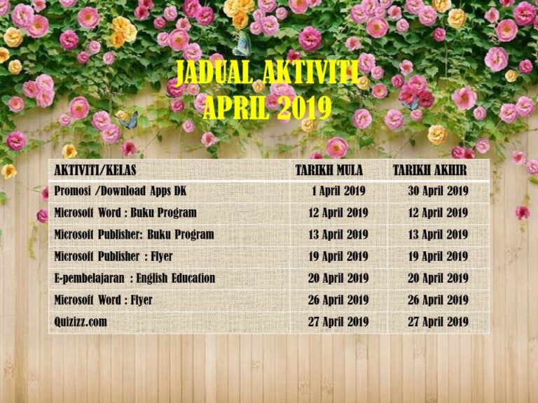 Jadual Kelas Bagi April 2019