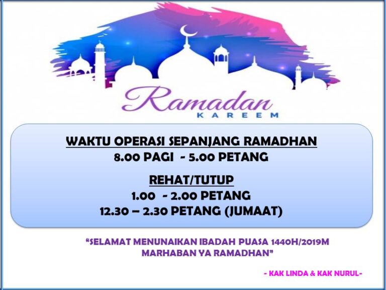 Waktu Operasi Sepanjang Ramadhan 1440H / 2019M