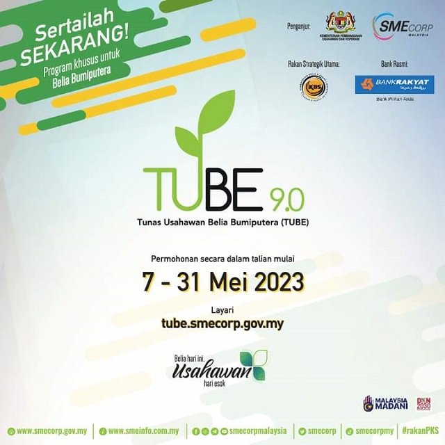 Permohonan untuk menyertai Program TUBE 9.0 akan dibuka mulai 7 -31 Mei 2023. Layari https://tube.smecorp.gov.my/ untuk maklumat lanjut. #smecorpmalaysia #rakanPKS #tube9 #kuskopmalaysia #MalaysiaMadani