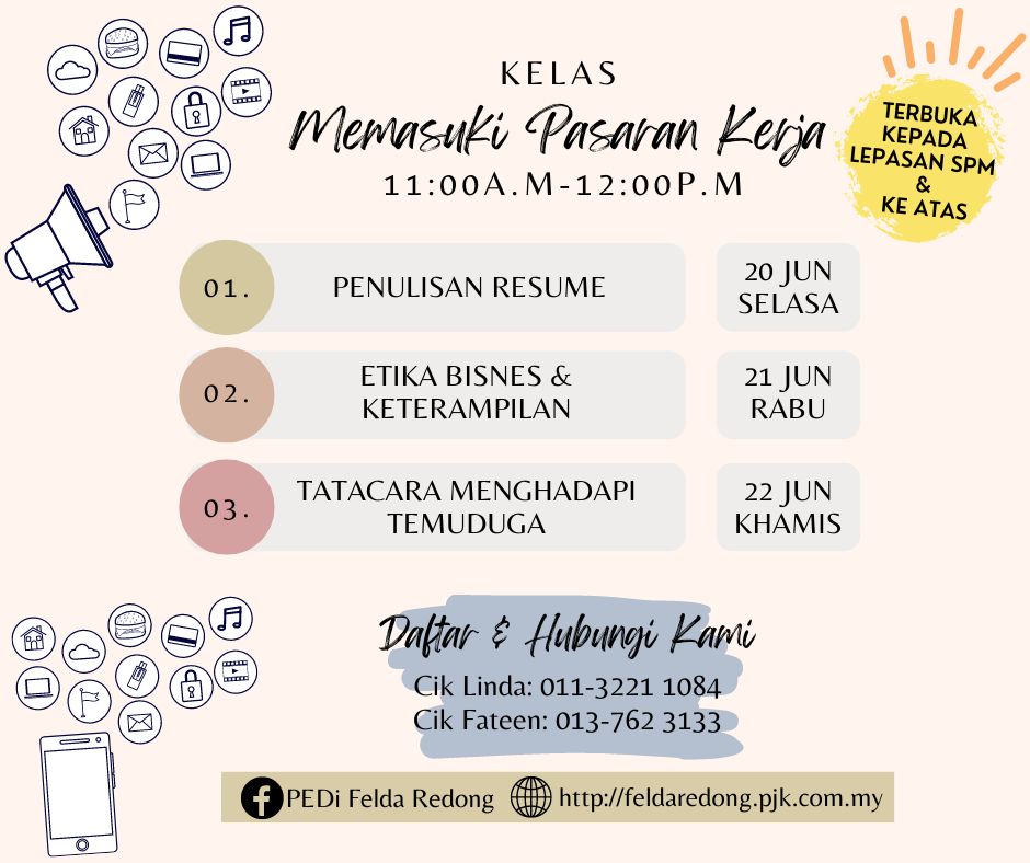 Pendaftaran boleh hadir ke PEDi Felda Redong atau hubungi petugas :-