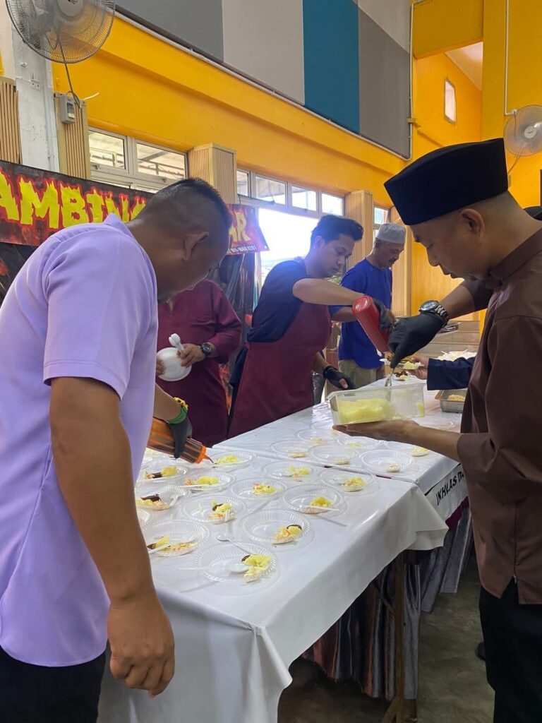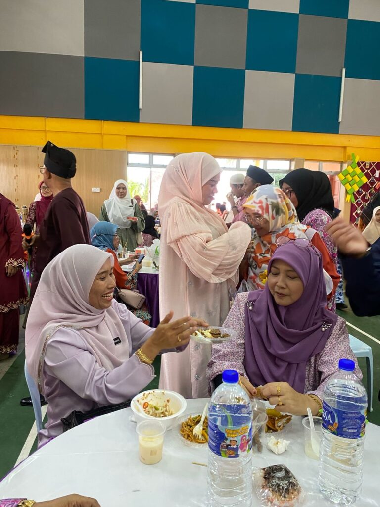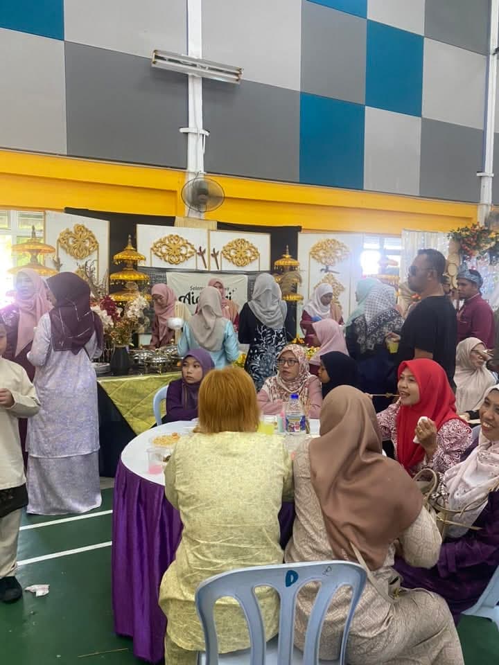 Jamuan makan yang disediakan bermula pada jam 11.30 pagi telah membuka ruang kepada para hadirin untuk menikmati juadah tradisional Hari Raya dalam suasana penuh mesra. Tepat jam 12.00 tengah hari, acara penyampaian sumbangan duit raya kepada para pelajar sekolah dilangsungkan, sebagai tanda keprihatinan dan dorongan kepada mereka untuk terus cemerlang dalam pelajaran.